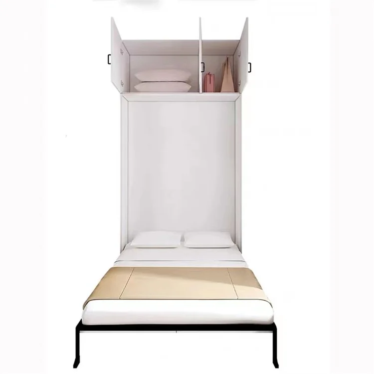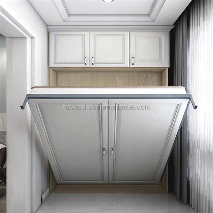 Customize Apartment Home Saving Furniture Wall Bed Wooden Folding Hidden Bed With Storage Cabinets