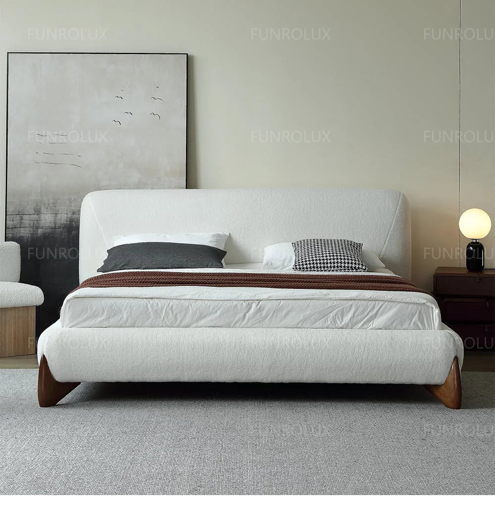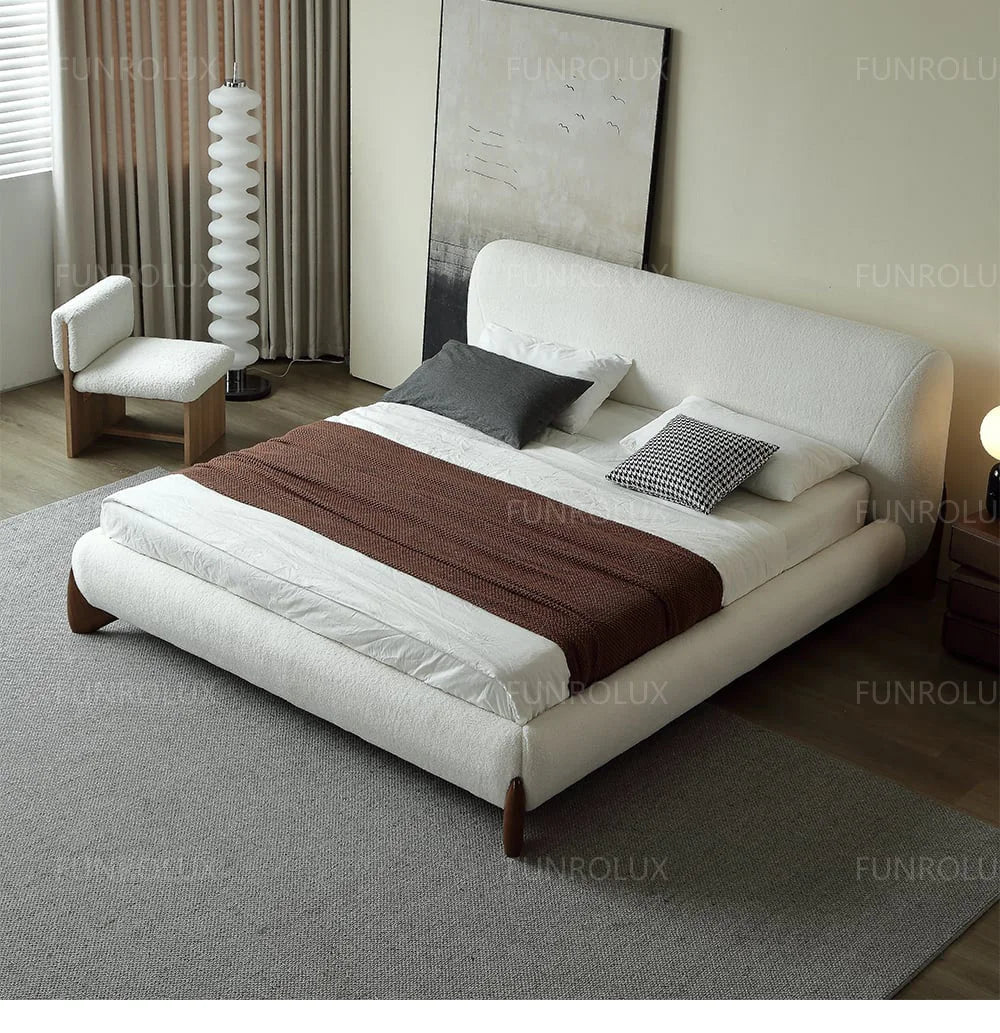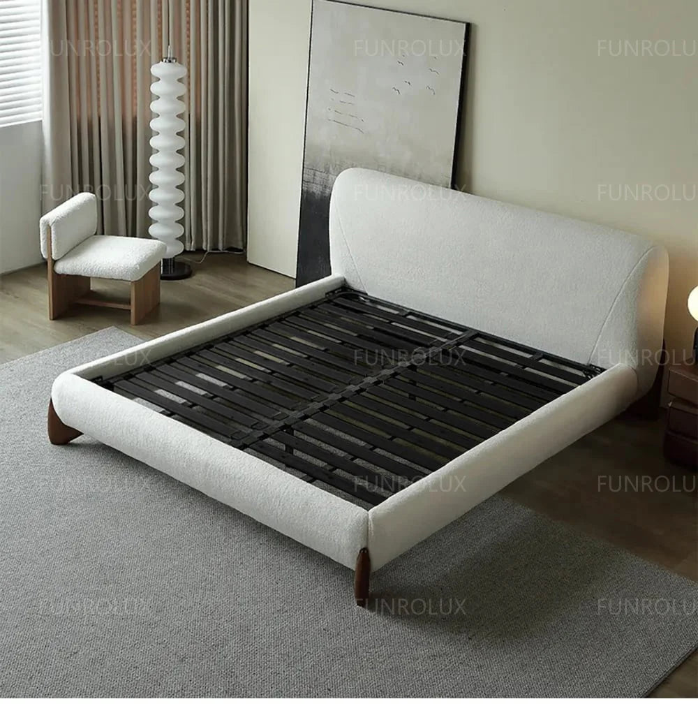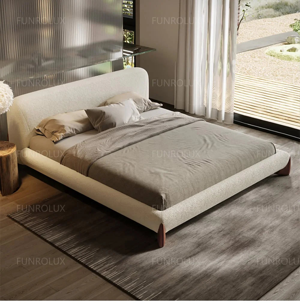 Modern Simple Bed Fabric Bed Japanese Tatami Double Bed Italian Minimalist Master Bedroom Soft Back Lamb'S Wool Bed