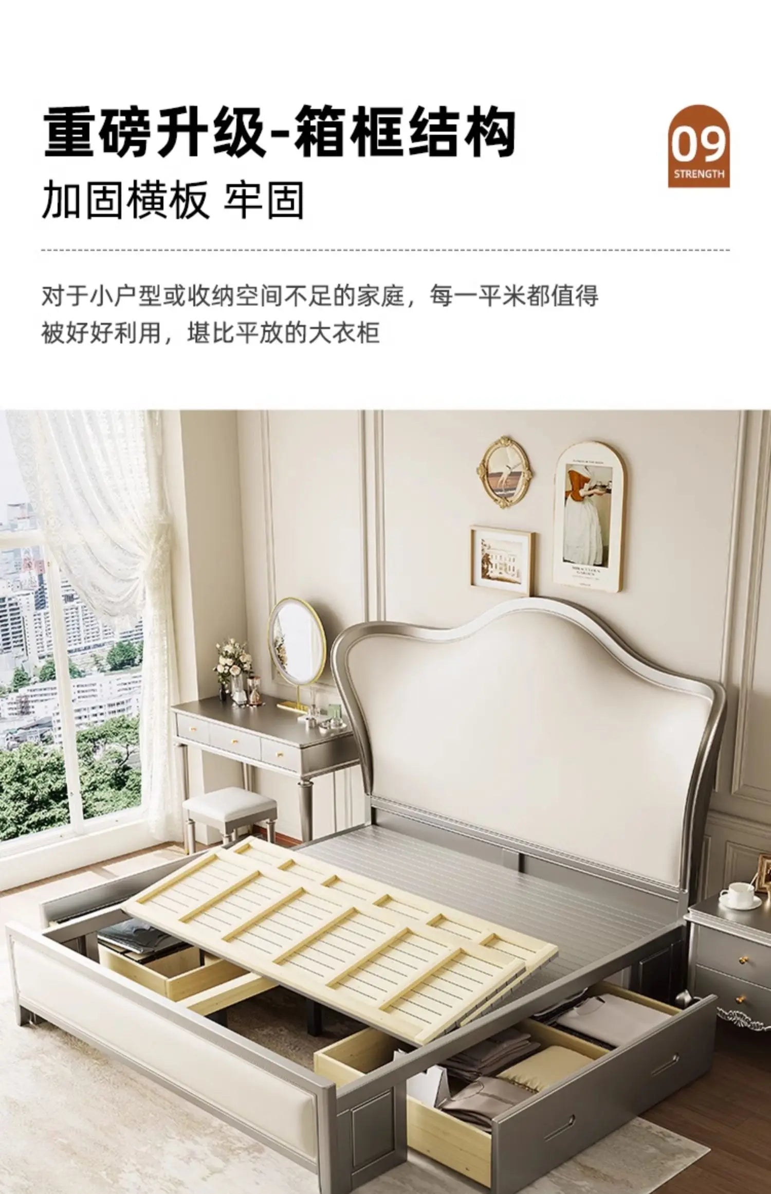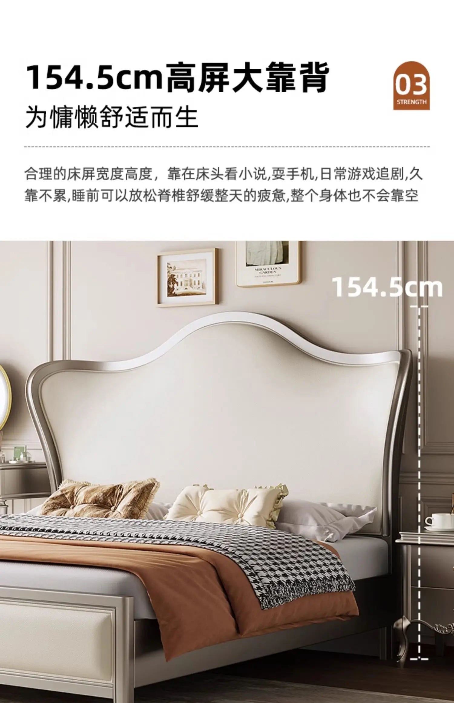 Backrest Sale Luxury Double Bed Modern Leather Wooden Adults Bedroom Double Bed Twin Queen Frame Cama Matrimonial Home Furniture